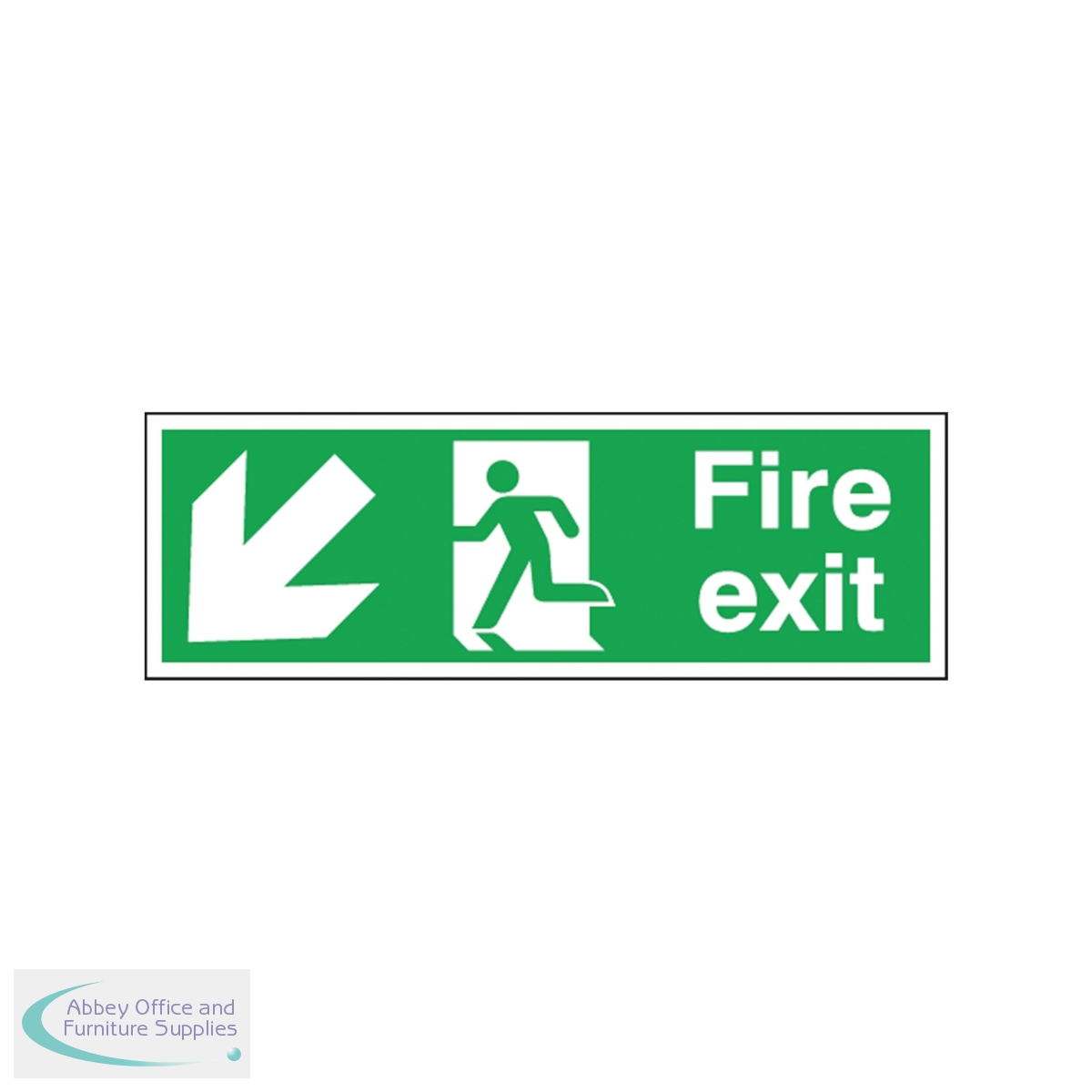 Use this sign to indicate the position of the fire exits, leaving no confusion in an emergency. The universally recognisable symbol and sign is professional and functional, clearly displaying the fire exits to customers, visitors and employees. This self-adhesive sign measures 150x450mm.