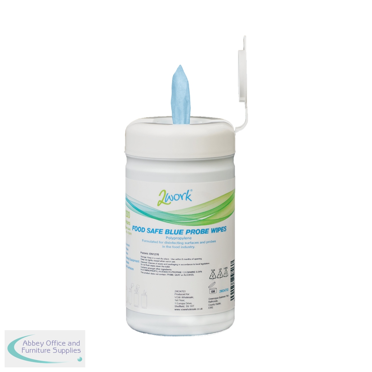 These 2Work Antibacterial Probe Wipes are for disinfecting probes between use. The wipes are tested to BS EN1276 standards and kill 99.9% of all bacteria within 30 seconds, including E-coli, Listeria, Salmonella & P.Aeruginosa. Each wipe measures 120 x 130mm. This handy dispenser tub contains 200 wipes.