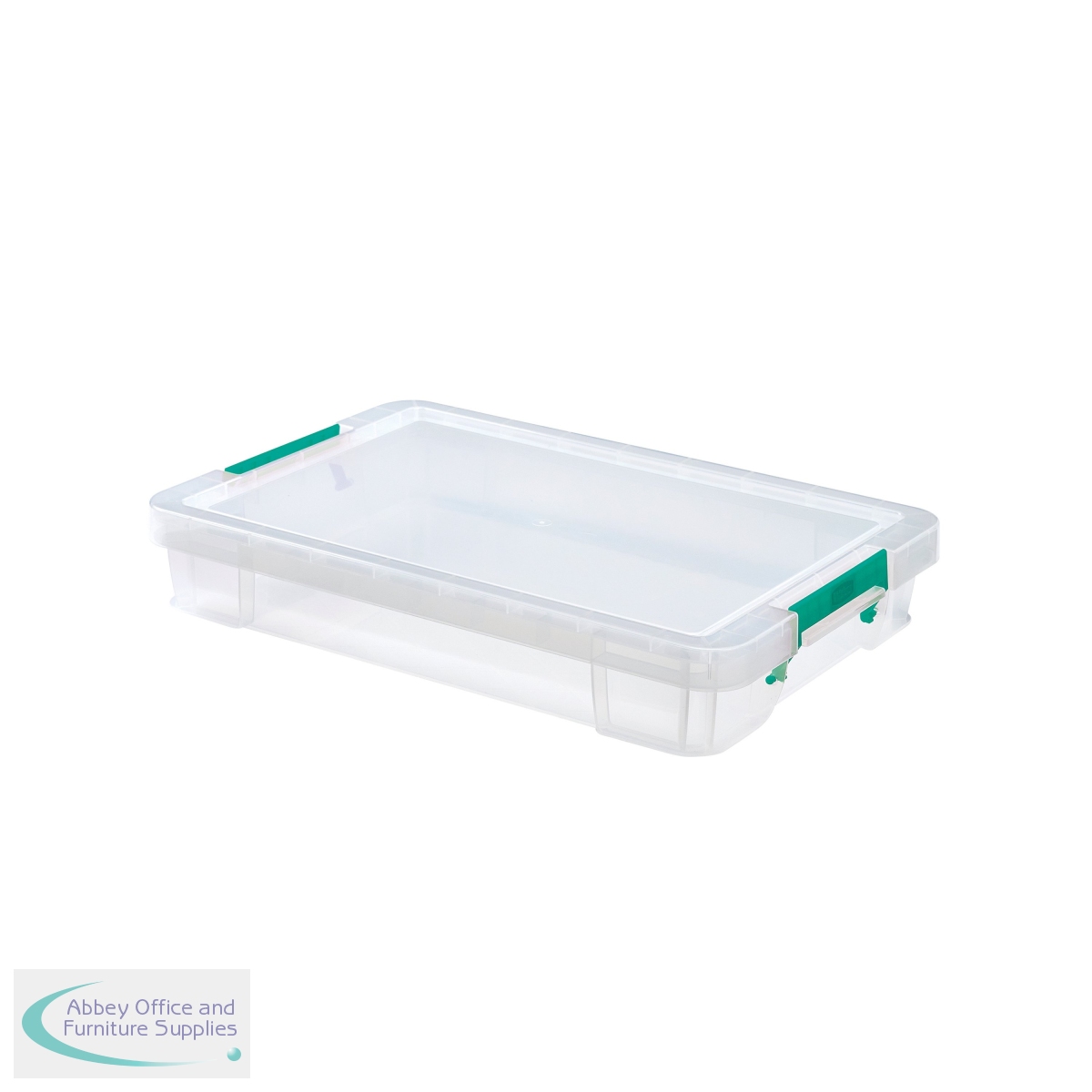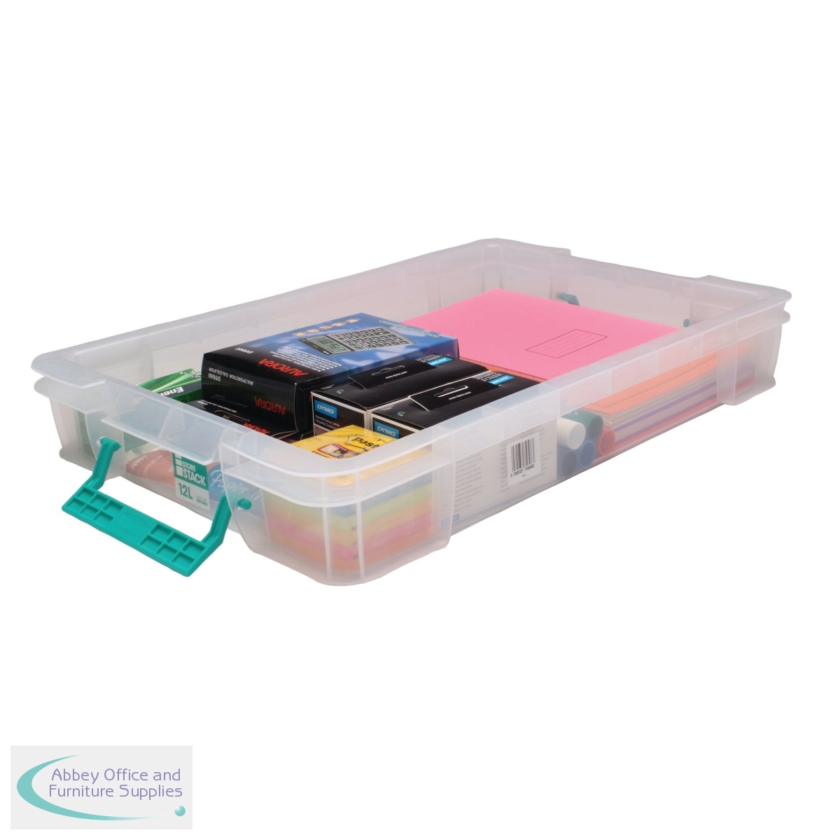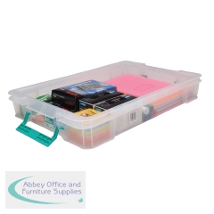 This heavy duty, stackable, polypropylene box provides a tough and durable storage solution for the office, home or warehouse. The base and corners are reinforced for extra strength and durability, which is ideal for long term storage. The storage box can be stacked with or without the included lid for versatile use. The lid also includes location guides for non-slip, secure stacking. The box also contains handles, which clip the lid in place and make transportation easier. This pack contains 1 clear storage box with a 12 litre capacity, measuring W550 x D360 x H90mm.