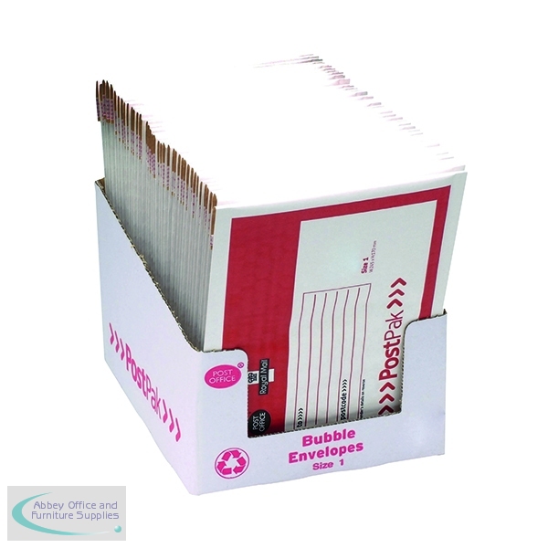 UB21910 - Post Office Postpak Size 1 Bubble Envelope 170x245mm White/Red (Pack of 100) 41630