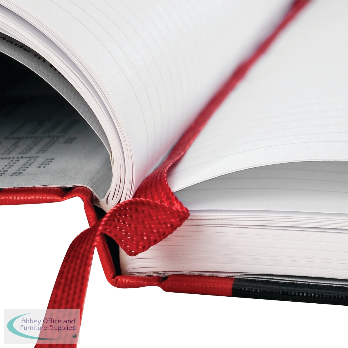 This professional Black n' Red A5 notebook contains 192 pages of high quality 90gsm Optik paper with single cash ruling. The pages are perforated for easy removal and designed for minimum ink bleed through for professional record keeping. The casebound book also features durable hardback covers and a ribbon page marker for easy reference. This pack contains five A5 notebooks with single cash ruling.