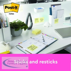 Ideal for desktop use, these repositionable Post-it notes feature a strong adhesive that will adhere to most surfaces and remove cleanly, which is perfect for making notes or leaving messages and reminders. Each pad contains 100 sheets and measures 76 x 127mm. This pack contains 12 pads in classic Canary Yellow.