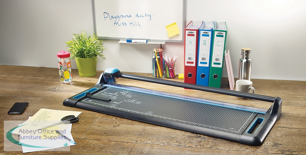 This Avery Precision Trimmer features a 65mm self-sharpening blade and a lockable, adjustable magnetic backstop for accuracy. A unique window in the cutter head also provides improved visibility when cutting. The trimmer also features printed paper and photo size guides for precision. This A1 trimmer has a cutting length of 880mm and a capcity of up to 20 sheets.