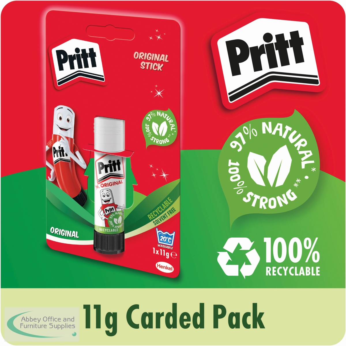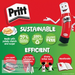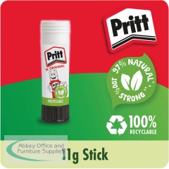 This solvent-free formula offers a strong and long-lasting adhesion while guaranteeing a solid initial tack and low paper wrinkling. Easy to apply, it is a high quality glue made with 97% natural ingredients and it is recyclable. Supplied in a value pack containing 12 sticks, Pritt Stick 11g is ideal for sealing envelopes and gluing papers and documents in the workplace. This pack contains 12 x 11g sticks.