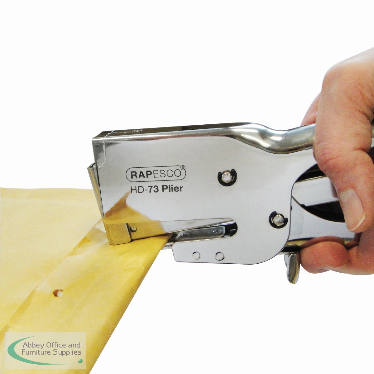 This all metal Rapesco HD-73 heavy duty plier is ideal for tough tasks, including fastening packaging, cardboard and post bags. The rear loading spring mechanism and contoured handle are designed for both comfort and ease of use. The plier has a throat depth of 68mm and can fasten up to 20 sheets of 80gsm paper. The silver plier uses 73/8-12mm staples and comes supplied with two anvils, sword and straight, for increased versatility.