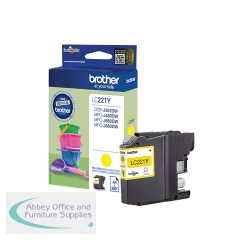 With a reputation for high quality, reliable components, you can trust in Brother ink cartridges for top quality, high resolution results. Brother printer machines work with separate ink cartridges meaning you only have to replace the empty cartridge, producing cost savings. Providing high quality results with vibrant colour prints that won't smudge, this LC221 yellow inkjet cartridge produces up to 260 A4 pages at 5% coverage.