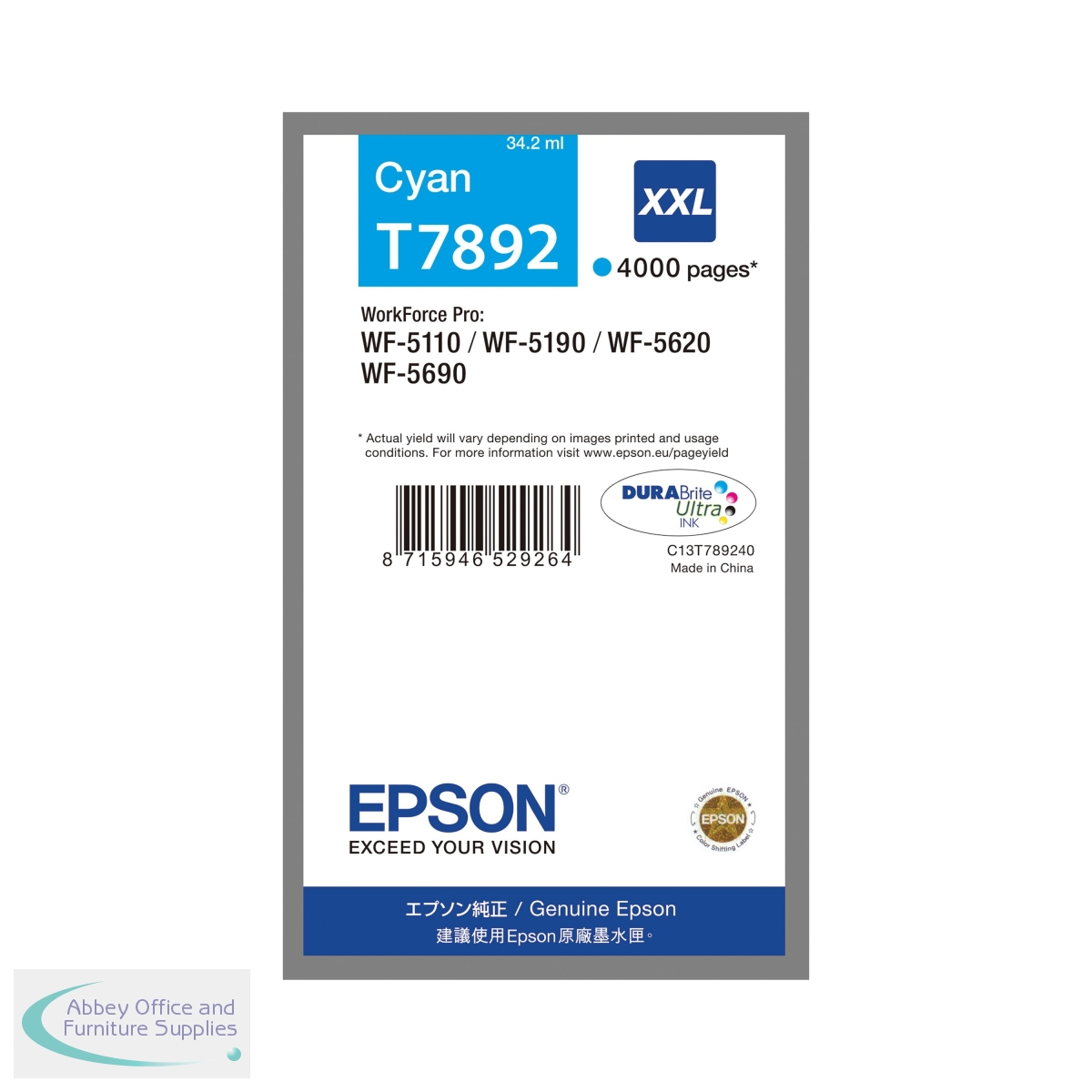 EP52926 - Epson T7892 DURABrite Ultra Ink Cartridge Extra High Yield Cyan C13T789240