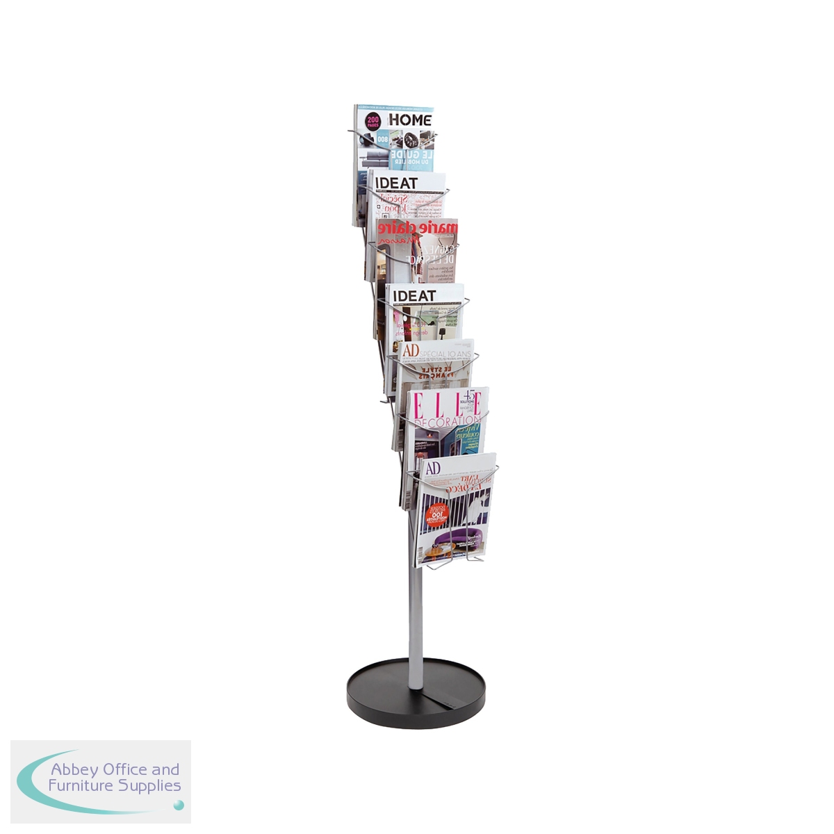 Perfect for use with magazines, corporate literature and brochures, the Alba Floor Standing Display is great for all businesses. You can encourage visitors to learn more about your business using the seven pockets for A4 literature and magazines. Manufactured from durable metal, this product can be used again and again without any deterioration in quality. The design is well balanced with a heavy base to help prevent knocking it over accidentally.