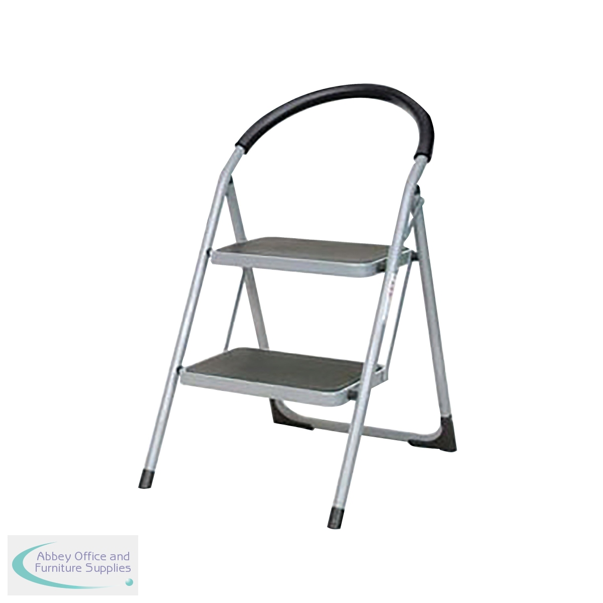 This convenient and high quality, 2 tread aluminium step ladder has a tubular steel frame and large, slip resistant treads for durability and safety. Tested to the highest standards, it folds away easily for quick and efficient storage and economy of space. This step ladder is 490mm high and has a maximum load capacity of 100kg.