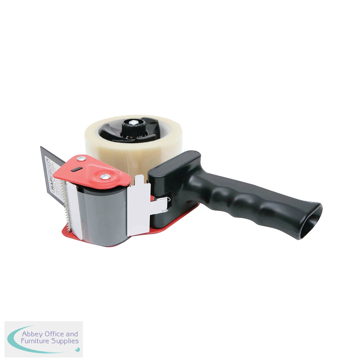 Great for heavy duty packaging, this Rapesco Carton Sealer features a tough steel construction and an impact resistant, contoured handle for comfort in use. Sealing packages and cartons is easy with the included adjustable tape brake and position/safety guide. This black carton sealer can hold packaging tape up to 55mm wide and 66m long.