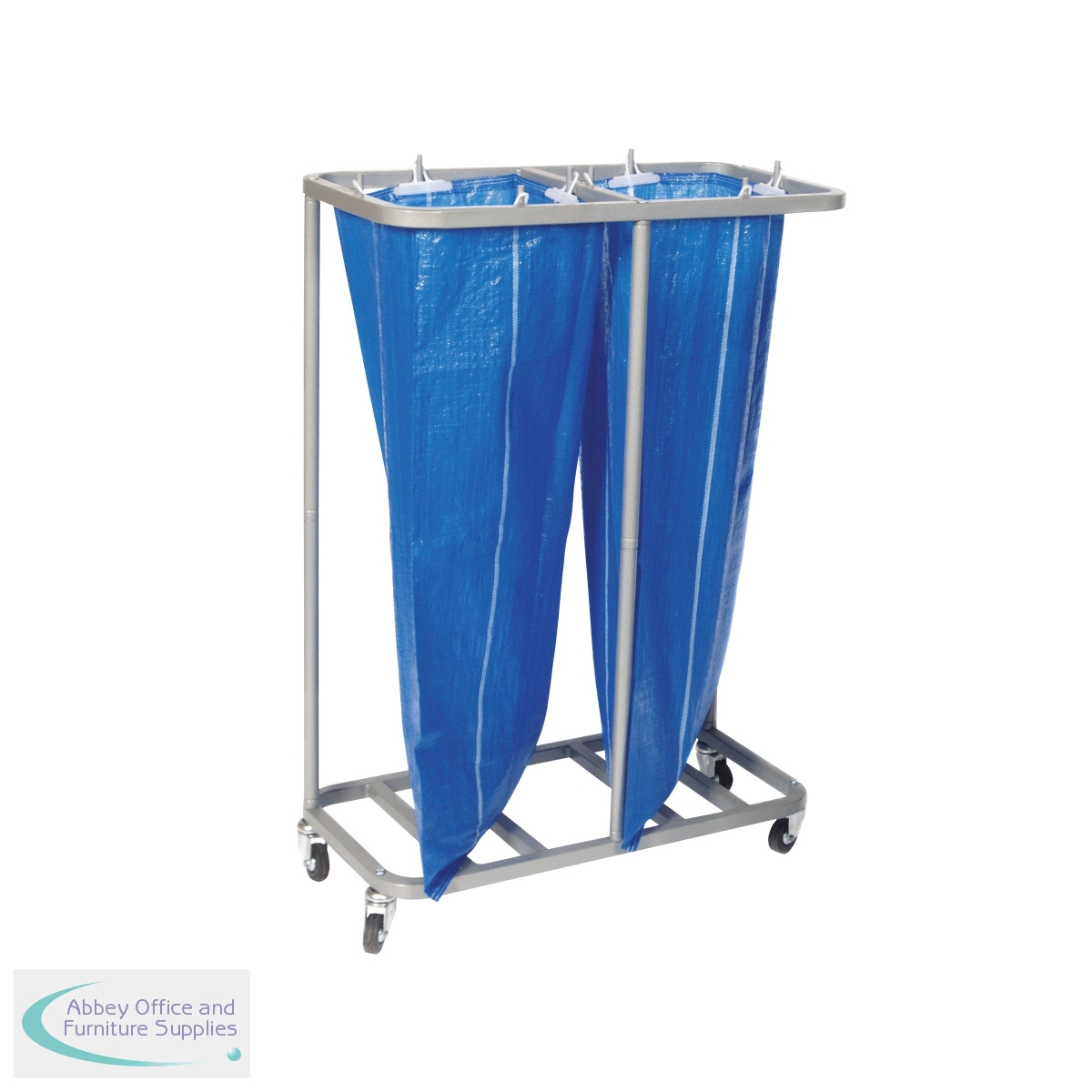 Manufactured from strong steel, with four rubber tyre swivel castors for easy manoeuvrability, this sack holder can hold 2 large mail sacks at one. This trolley holds the bag open for easy and quick access, and measures W788 x D406 x H1118mm. Sacks are not supplied with this trolley.