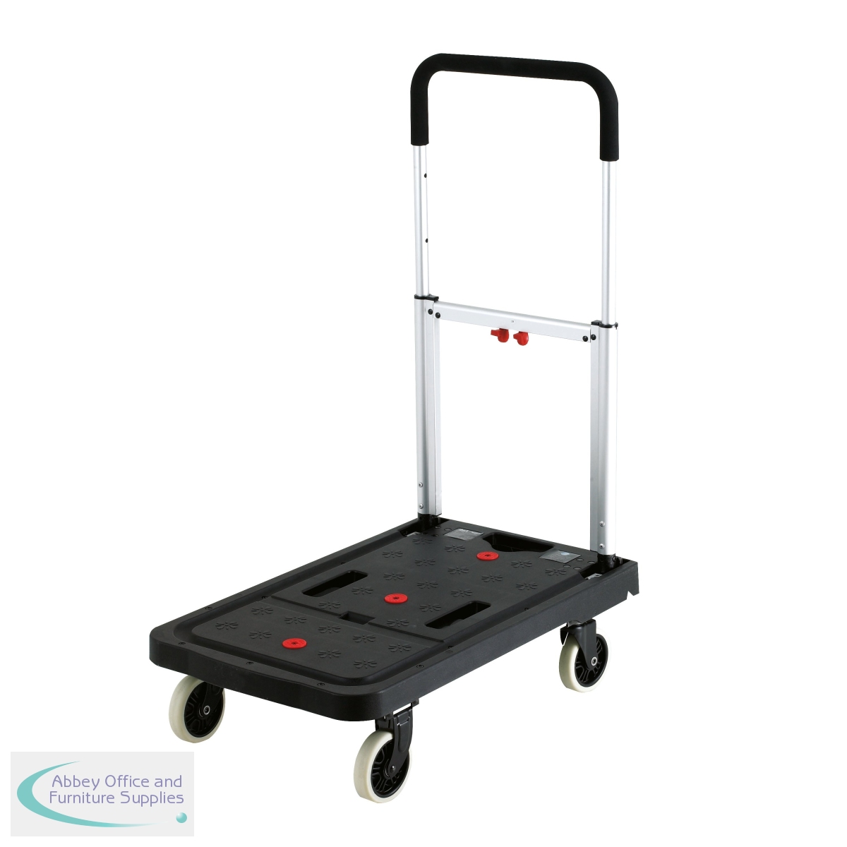 Transport boxes and crates with this convenient folding aluminium platform truck. Made from strong, tubular aluminium it has a substantial 120kg capacity and strong, plastic connectors for an easy grip. Rubber tyred wheels offer great flexibility of movement, without marking the floor, making them suitable for a variety of surfaces. The truck measures W410 x D680 x H920mm has a telescopic handle with 3 height positions.