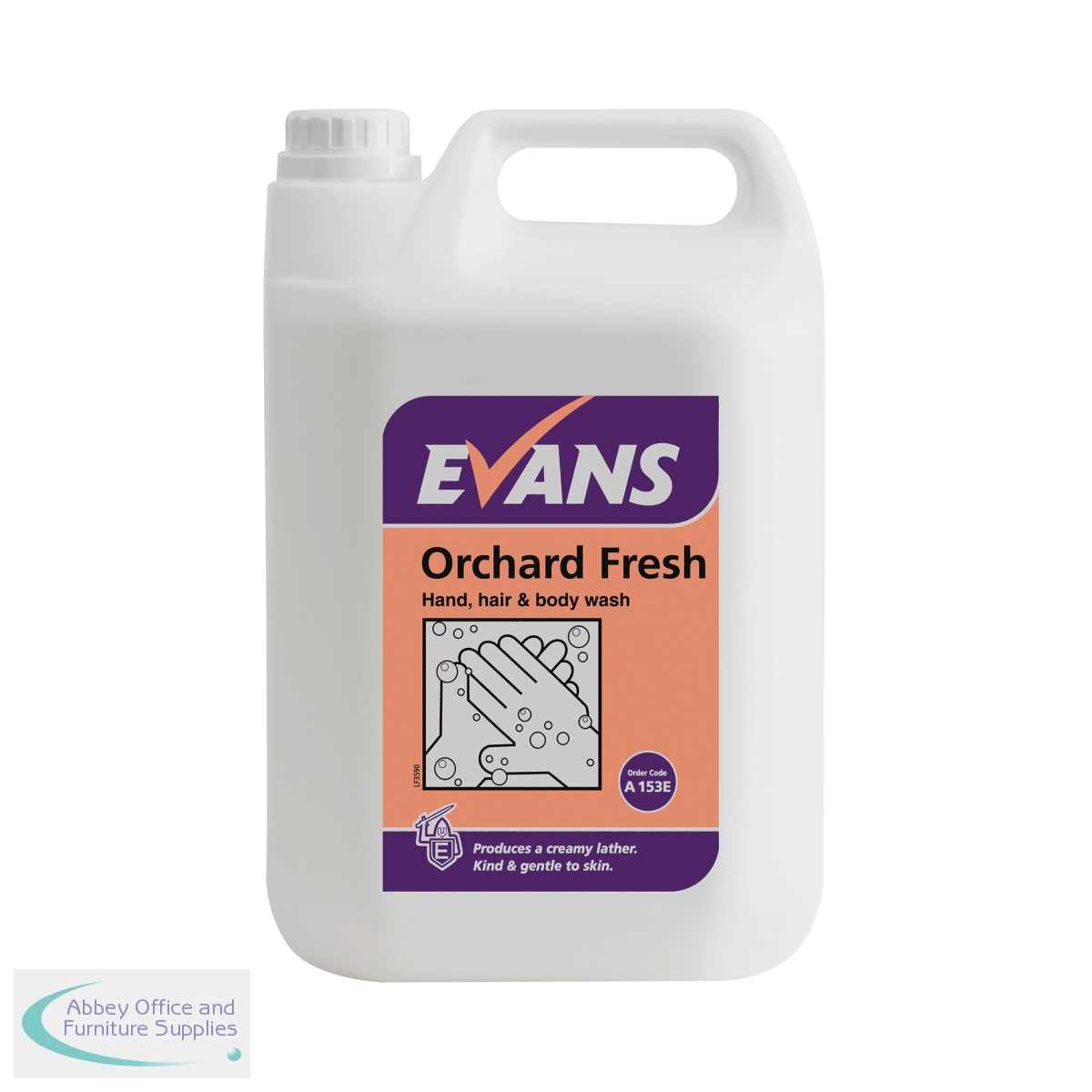 Ideal for executive washrooms, Evans Orchard Fresh is a soft and luxurious hand, hair and body wash. This gentle liquid produces a creamy lather that is equally as effective at the sink or in the shower, with an added moisturiser to keep skin soft and supple. A gentle grapefruit, mandarin and apple scent adds a luxury feel. This 5 litre bottle can be used to refill wall-mounted or free-standing pump dispensers.