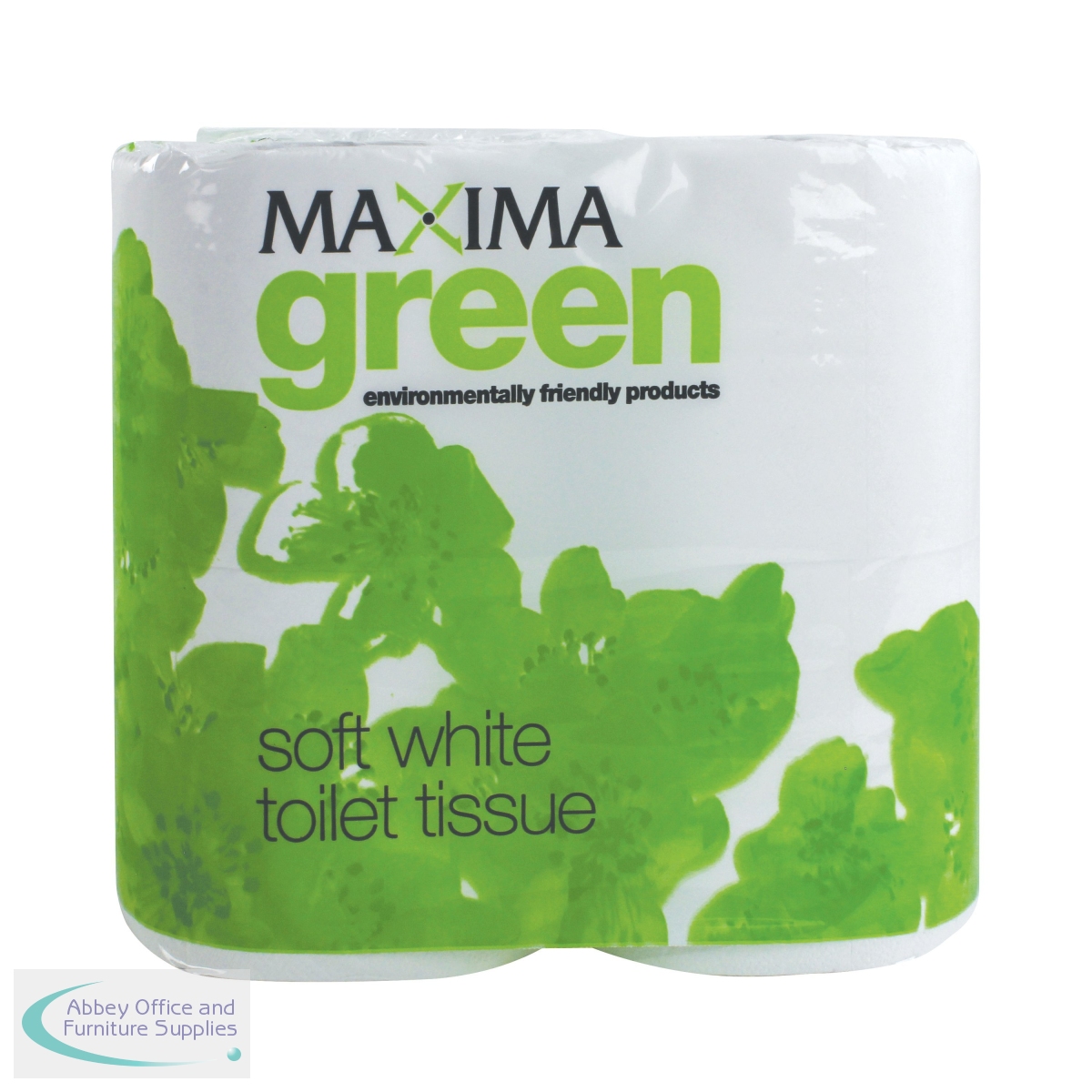 These Maxima white toilet rolls offer great value for money and are soft, strong and absorbent. Each roll contains 320 sheets for extended use, making them both economical and efficient. In addition, they are made from 100% recycled paper, enabling you to reduce your carbon footprint and do your bit for the environment. A hollow central tube allows them to be placed on a dispenser for quick and easy access. This pack contains 36 rolls.