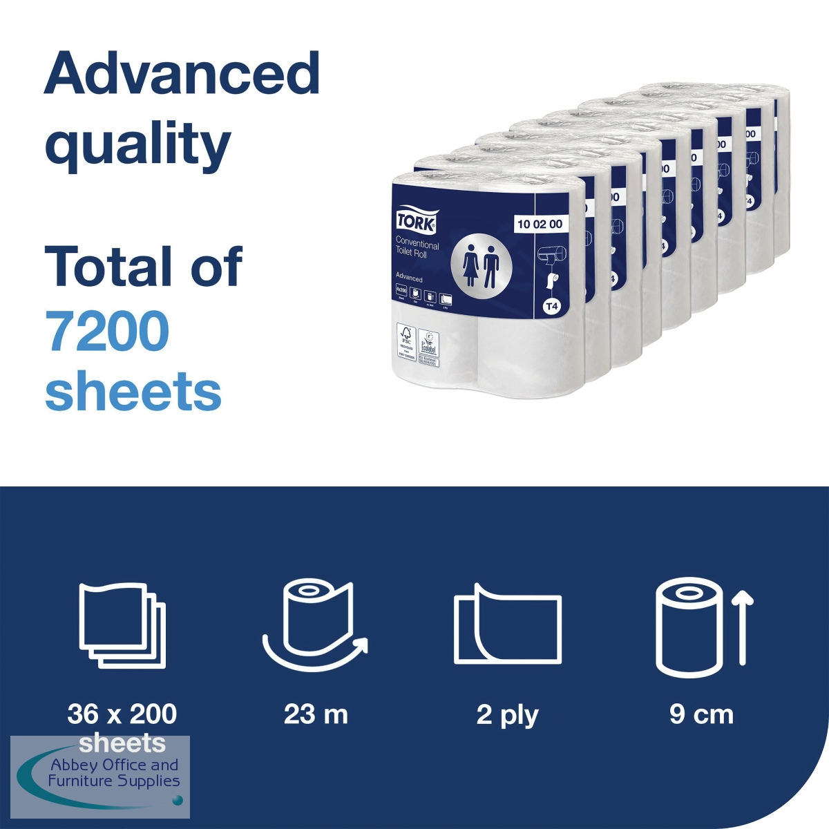 SCA82366 - Tork T4 Conventional Toilet Roll Advanced 2-Ply White 200 Sheets (Pack of 36) 100200