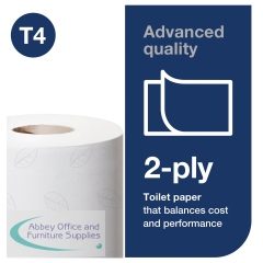 These high quality Tork toilet rolls are suitable for low traffic washrooms with 200 sheets of absorbent, 2-ply, white paper per roll. Designed to impress, the embossed paper features an attractive pattern and is soft for improved comfort in use. Suitable for use with Tork T4 standard toilet roll dispensers which hold two rolls for easy access and low maintenance.