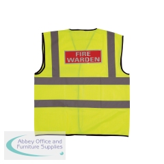 Make sure your fire warden is highly visible and easily identifiable in the event of a fire or emergency. Pre-printed with 'Fire Warden' in reflective lettering on both the front and back, the vest conforms to EN471 Class 2 for high visibility, providing intermediate protection. This yellow vest comes in extra large and is designed to fit comfortably over clothes.