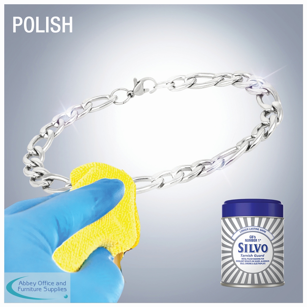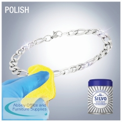 Using Silvo metal polish wadding provides a longer lasting shine for precious Metals - can be used on silver, gold, aluminium, chrome and electroplate. A traditional product which is easy to use and leaves you with excellent results. Directions: Shake well apply with a soft cloth. Polish off with a dry soft cloth before polish has completely dried.