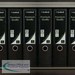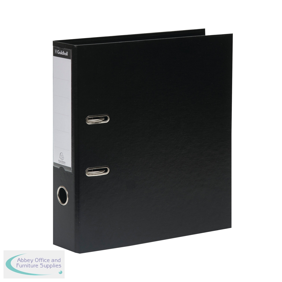 This durable Guildhall A4 polypropylene over board lever arch file features a 80mm filing capacity for up to 650 sheets of paper, large spine label for easy identification of contents and a finger hole for easy retrieval from a shelf. Ideal for implementing a colour coordinated filing system at home or in the office, this pack contains 10 black lever arch files.