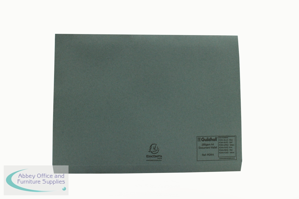 These Guildhall plain document wallets are made from durable 285gsm manilla and are suitable for filing and organising loose A4 sheets. The wallets have a 32mm filing capacity for storing up to 320 sheets and a 3/4 length flap to help keep content secure. Suitable for colour coordinated filing, this pack contains 50 blue document wallets.
