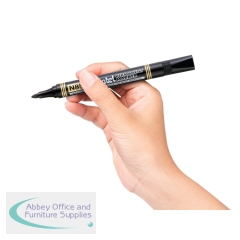 Ideal for everyday permanent marking on a variety of surfaces this Pentel N850 marker features low odour ink which is xylene and toluene free. A specially moulded hexagonal cap prevents the marker from rolling on flat surfaces. This marker has a bold bullet tip which writes a line width of 2.0mm. This pack contains 12 markers with permanent black ink.