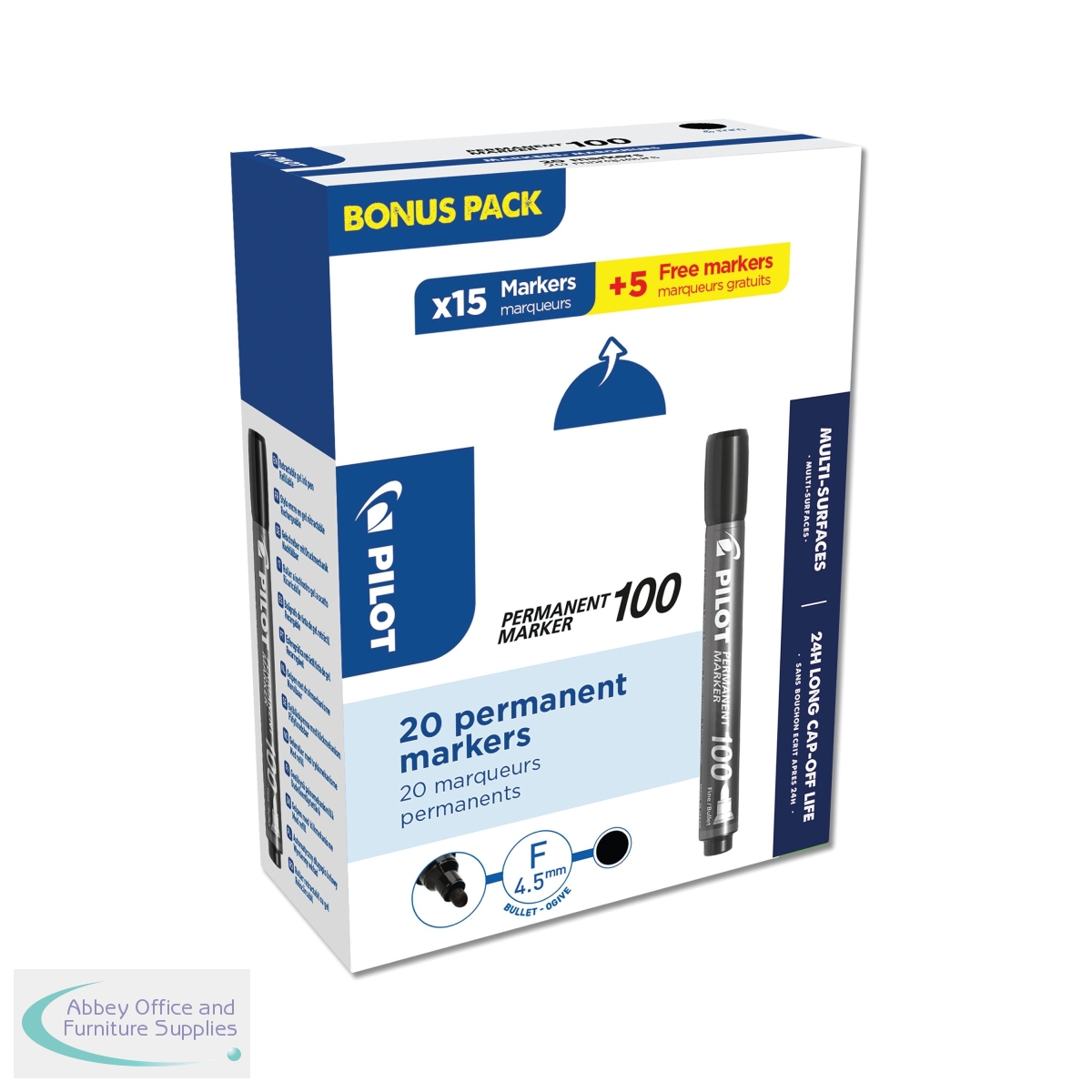 PI50126 - Pilot Permanent Marker 100 Bullet Tip Black Value Pack 15 + 5 FREE (Pack of 20) 3131910501268