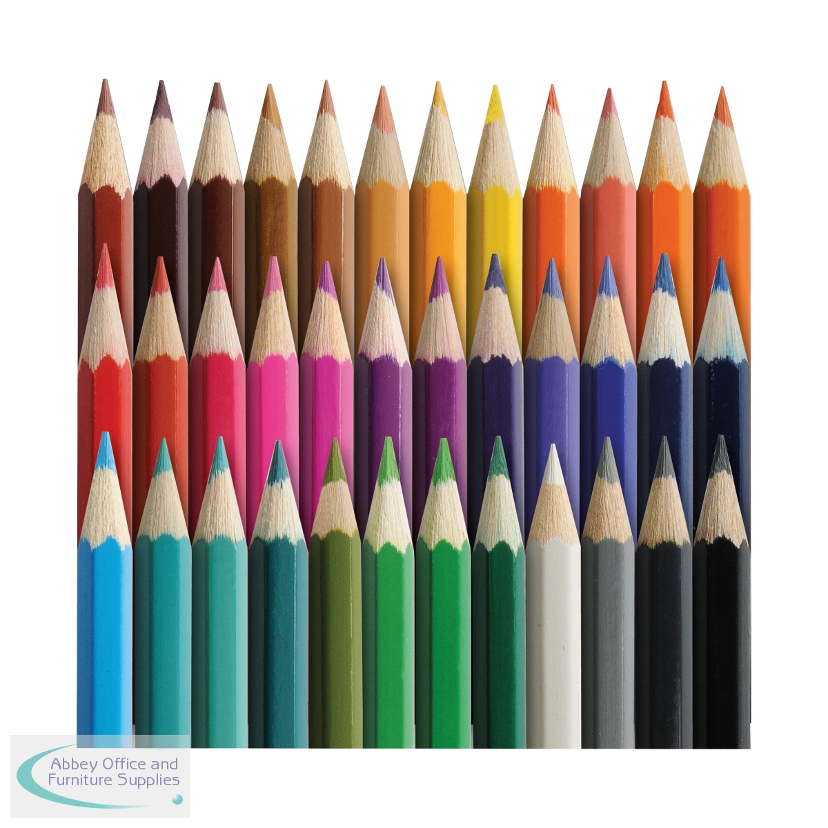 Pre-sharpened and ready-to-use straight out of the box, these Classmaster colouring pencils are ideal for artists of all ages. Each pencil is made from reliable quality wood in a polished, hexagonal barrel, so there's no need to worry about breakages or pencils rolling under desks out of reach. The 3mm diameter lead is softer for excellent colour laydown; ideal for younger artists and for colouring in. Pack contains 36 colouring pencils in 36 assorted colours, in a handy dispenser box.