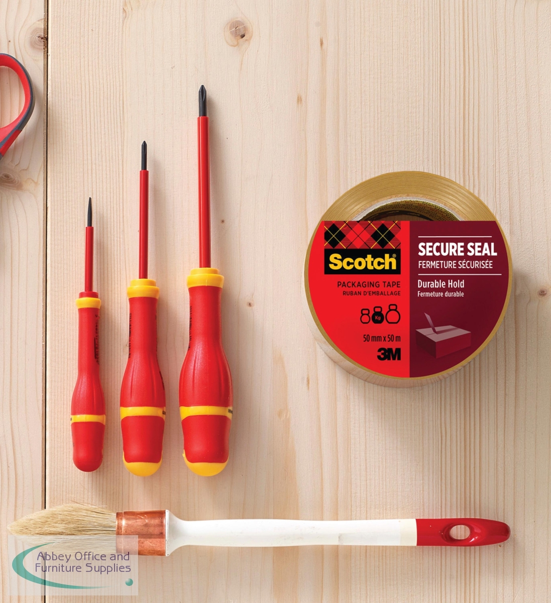 Scotch Secure Seal Packaging Tape is designed for shipping standard packages and for sealing boxes in storage. The packing tape provides a strong secure seal that resists splitting on application and a durable hold even through rough journeys. Supplied in a 50 metre roll, this brown packaging tape has a width of 50mm.