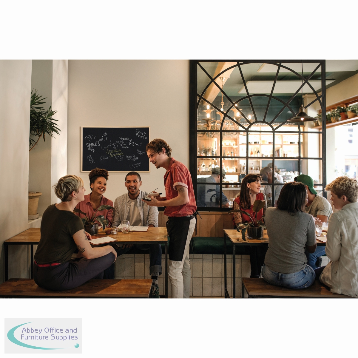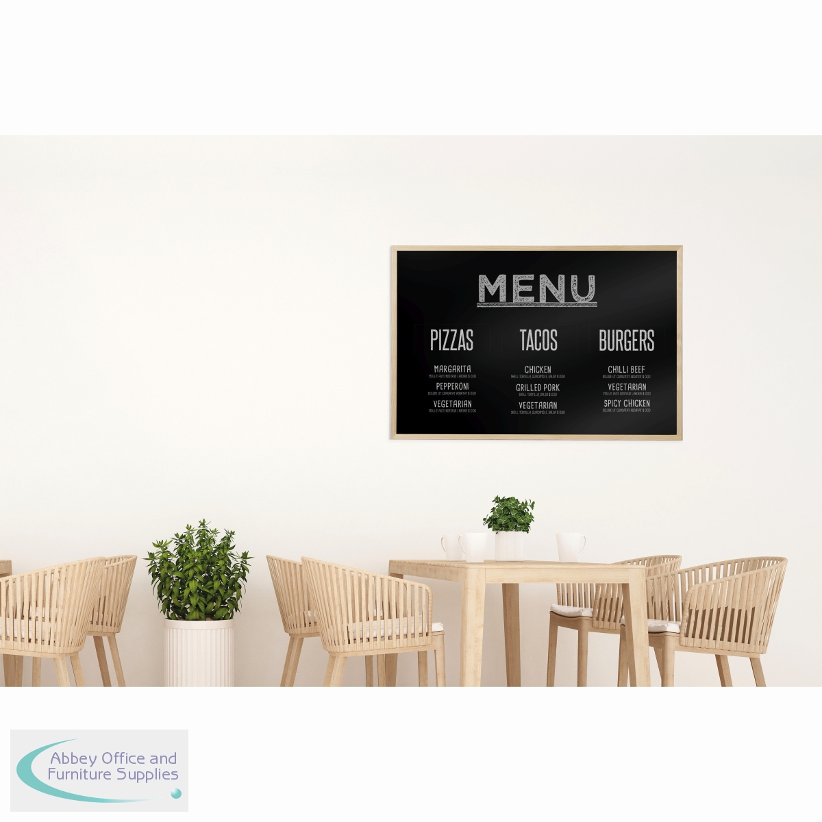 This Bi-Office Wall Mounted Chalkboard is ideal for use in bars, restaurants, classrooms and more. The lightweight board features a sturdy wood frame and easy to clean surface for frequent use. This board measures 900 x 600mm and comes supplied with wall fixings.