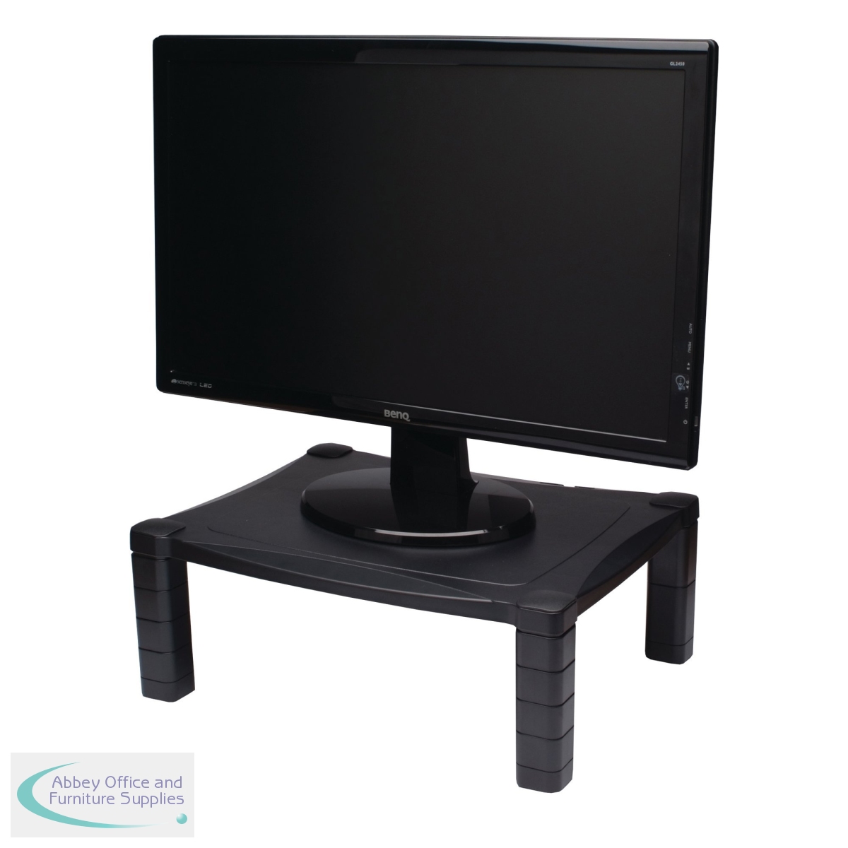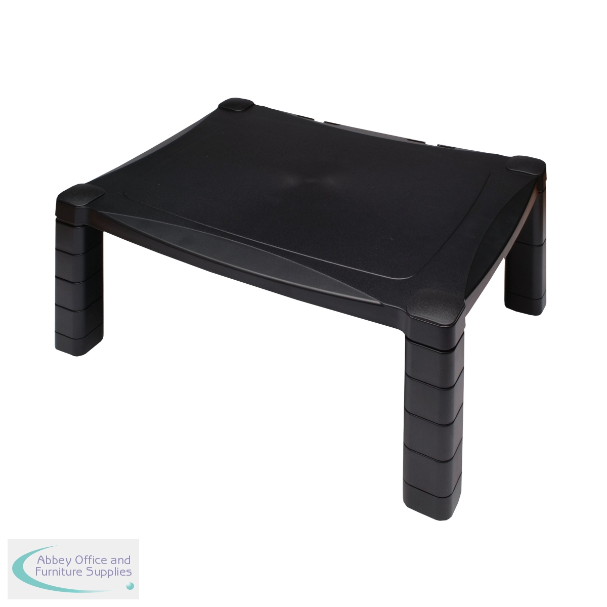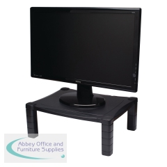 This Contour Ergonomics monitor stand has an adjustable height system of 40mm to 160mm, helping to create an ergonomic viewing angle and greatly reducing stress on your back and neck. For use with laptops, 15 - 20in LCD or CRT monitors, and printers or other office machines, the stand also has a built-in cable organiser to help keep your workspace tidy and padded feet to protect your desk surface. This black monitor stand measures W433 x D346 x H164mm, with a platform size of 430 x 340mm.