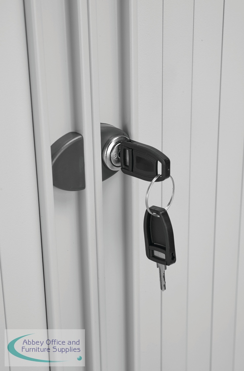 This Tambour Unit features height adjustable feet, and is ideal for maximising storage capacity while saving valuable office space. Designed to fit A4 binders, lateral and suspension filing, this Tambour Unit has a tough, durable welded carcass. The shutter doors open independently of each other, granting quick access to files. This unit is supplied empty without files.