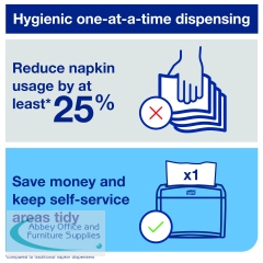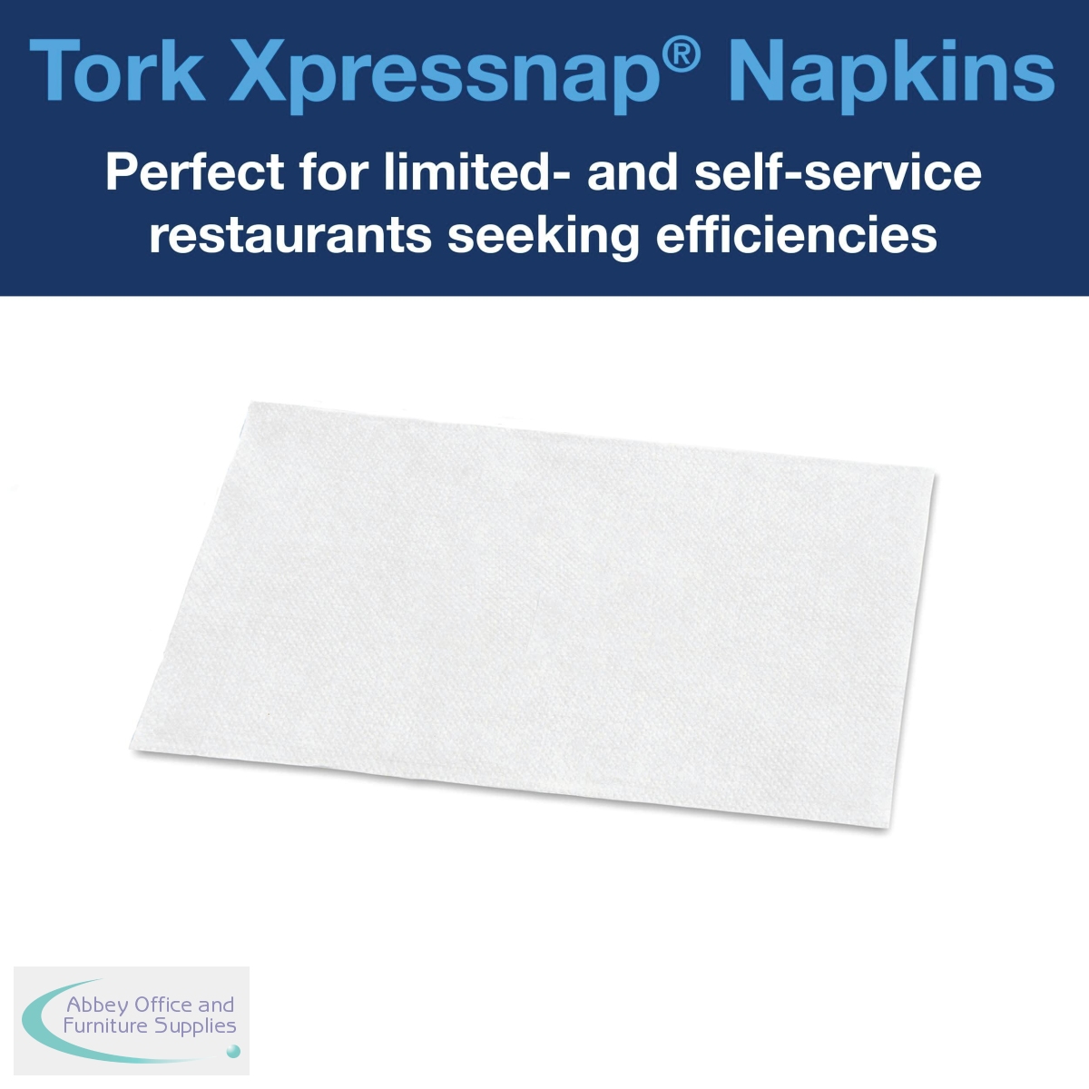 Designed for use with the Tork Xpressnap interfolding napkin dispensers, these white, extra soft, 2-ply napkins are folded 2 times and are ideally suited for use in casual dining environments. The Xpressnap system reduces napkin consumption by at least 25% compared to traditional napkin dispensers while promoting hygiene by encouraging users to touch only the napkin they are taking. Each 2-ply napkin is extra soft and measures 213 x 165mm (unfolded). This pack contains 1,000 napkins.