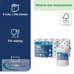 Designed for use in the Tork M4 Reflex dispenser, this strong and absorbent multipurpose wiping paper is suitable for wiping and drying surfaces, equipment and hands. The centrefeed design reduces consumption by up to 37% and minimises the risk of cross-contamination. The 1-ply, industrial paper roll features QuickDry technology and SmartCore core removal and comes on 114m rolls with 340 sheets per roll. Supplied in a pack of 6 rolls.