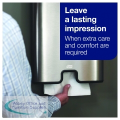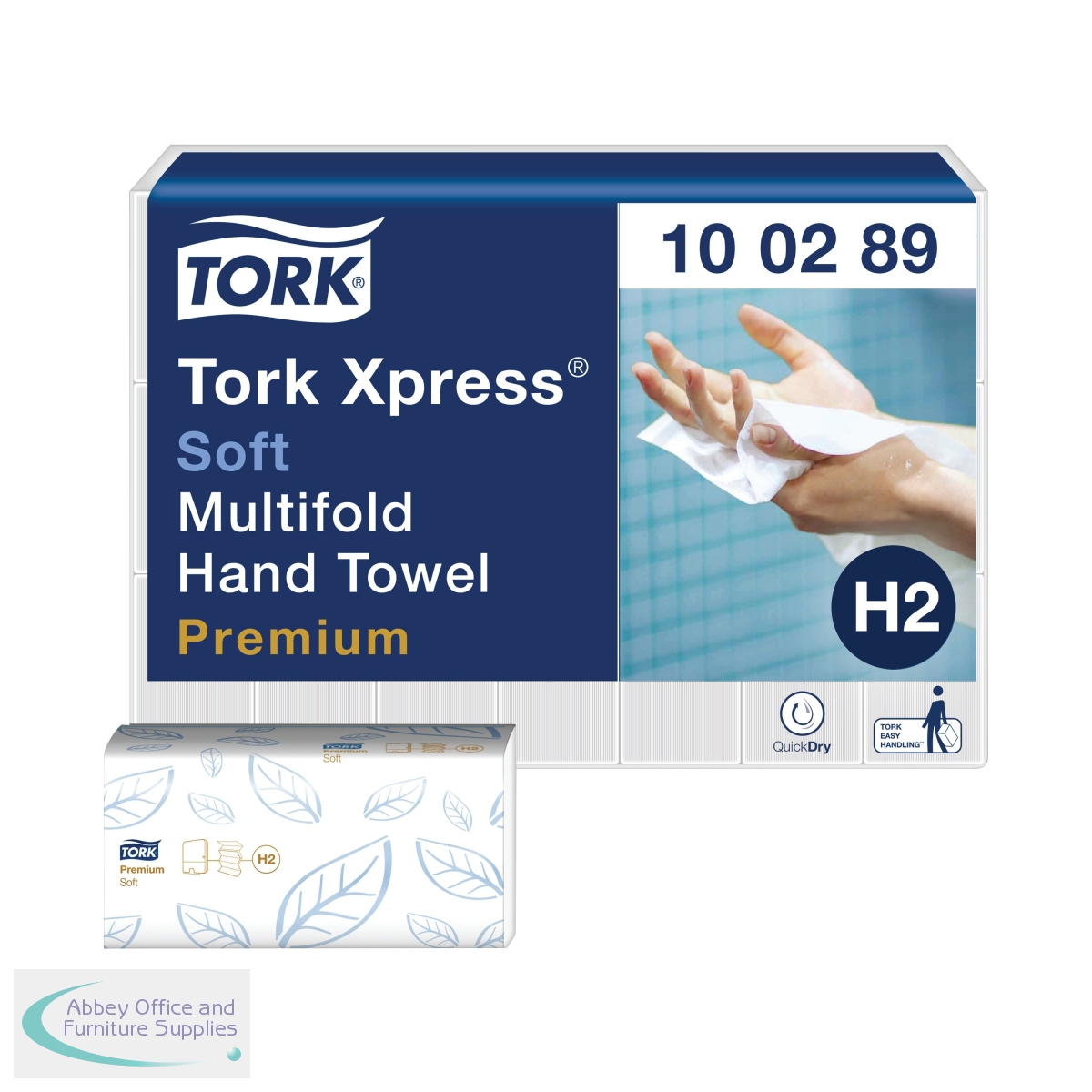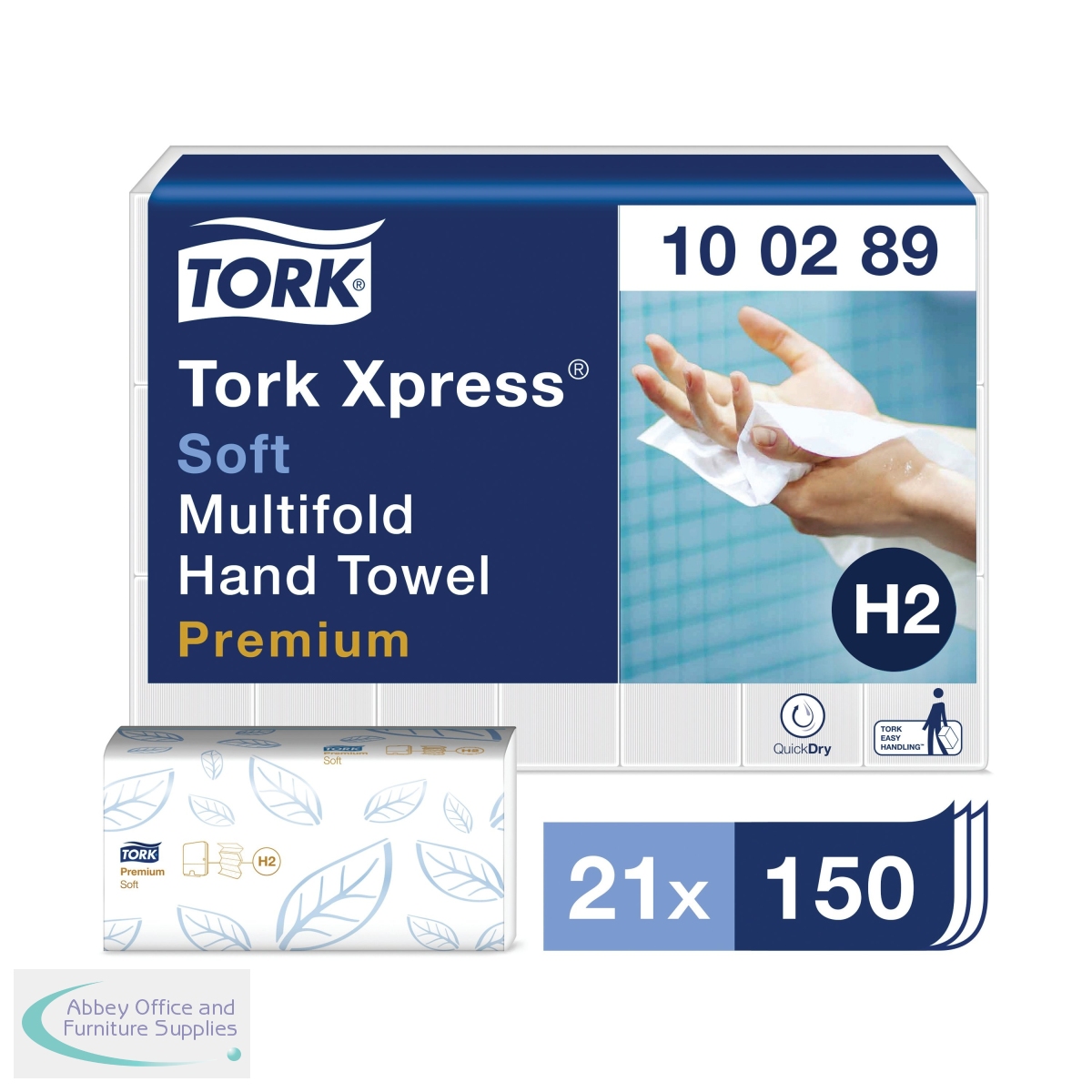 Designed for use in the Tork H2 dispenser, these premium 2-ply hand towels are soft and absorbent with QuickDry technology for fast and efficient hand drying. The multi-fold towels are designed to hygienically dispense one at a time to reduce consumption. The tear-resistant, embossed towels are white with an attractive leaf design offering a high quality appearance. This pack contains 21 sleeves with 150 hand towels per sleeve and each towel measures 255mm x 212mm (unfolded).