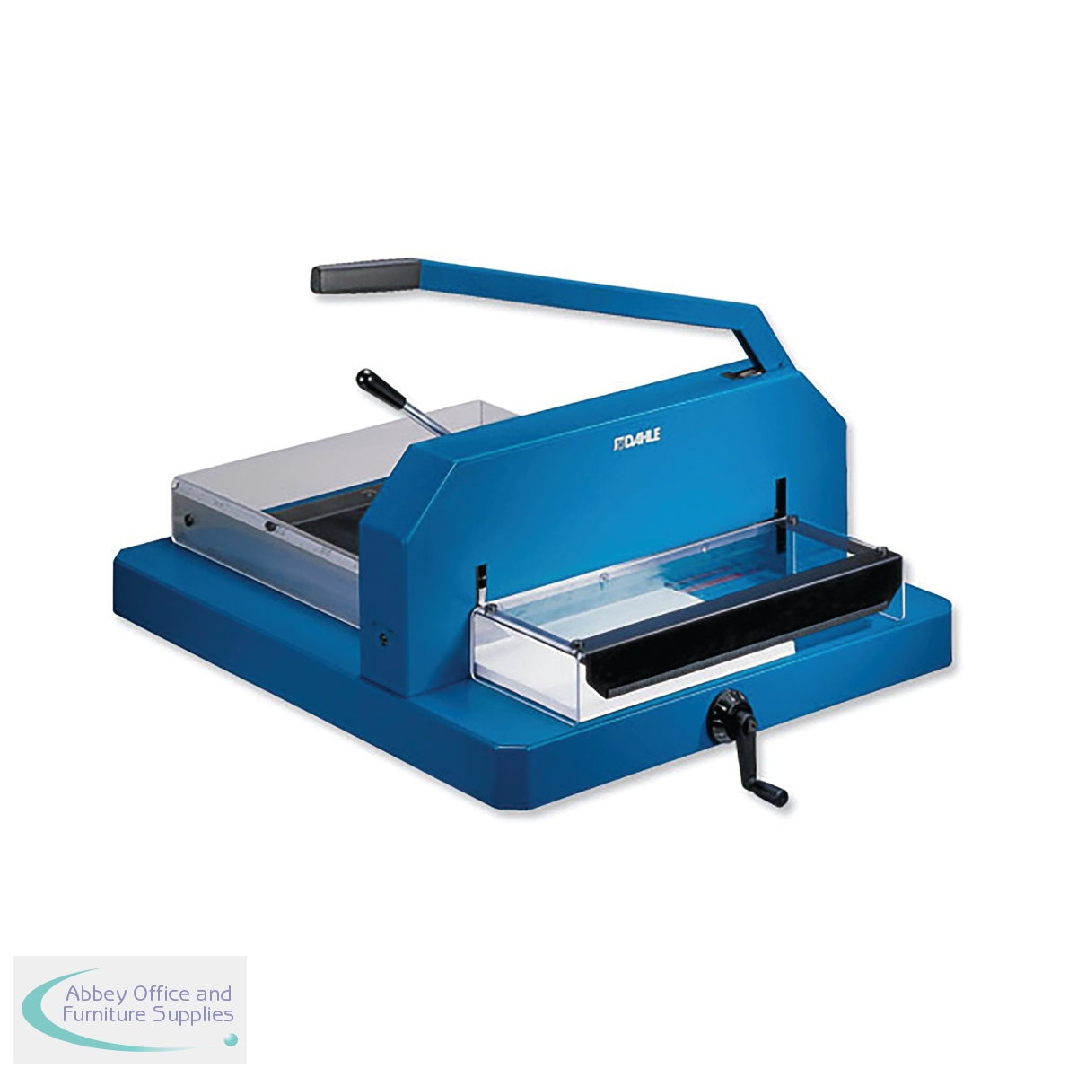 This Dahle professional stack cutter provides precise, simple and safe cutting of large volumes of paper. The cutter also features a ground steel blade with safety shields on either side and a paper clamp for precision. This heavy duty cutter has a cutting length of 430mm and a capacity of up to 200 sheets of 80gsm paper.