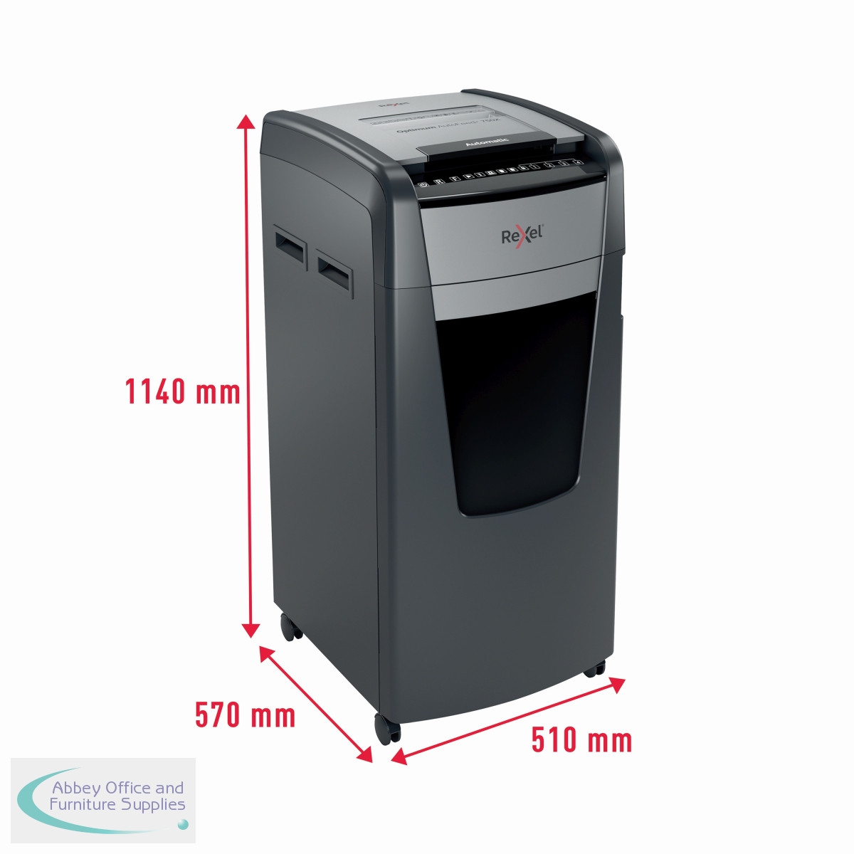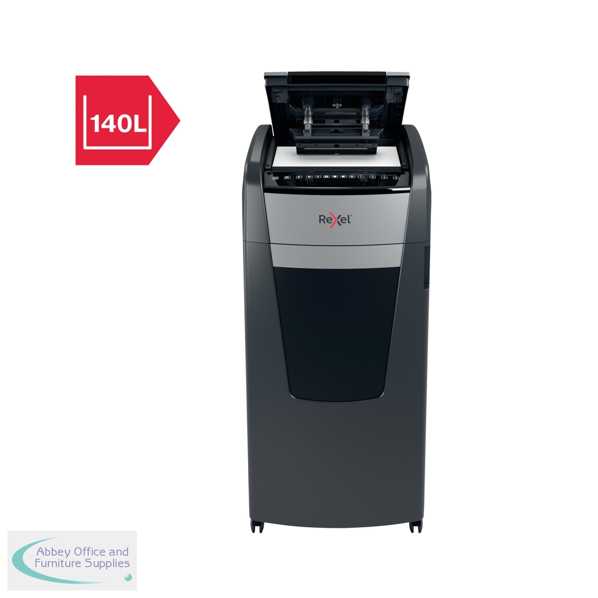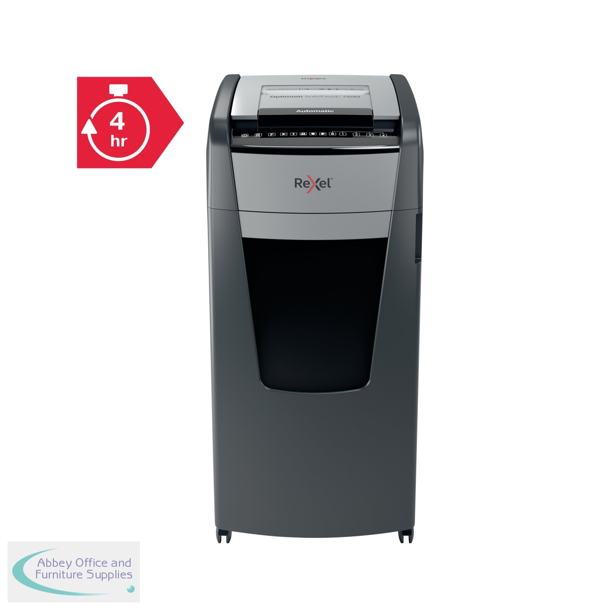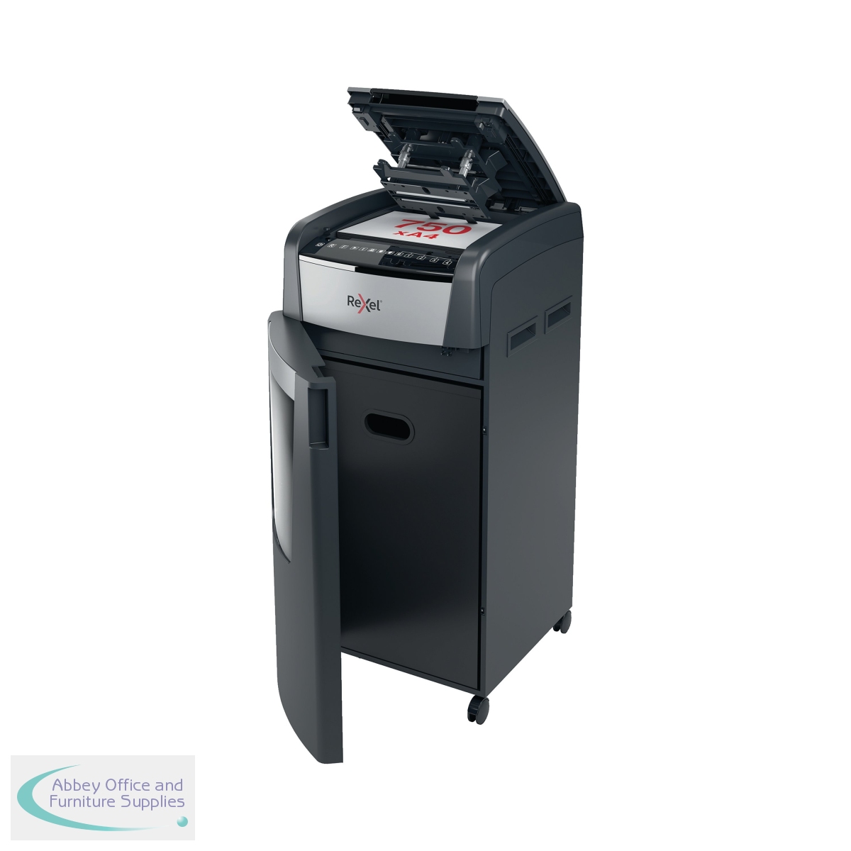Rexel Optimum AutoFeed+ 750M micro-cut shredder automatically shreds up to 750 A4 sheets of 80gsm paper at a time, into P-5 (2x15mm) micro-cut pieces. This auto feed shredder machine is a sophisticated office shredder, featuring a 140 litre pull out bin. Featuring Jam Free technology for smoother operation. The auto-feed removes the need to manually feed paper. With the capability to accept staples and paper clips, the tedious process of manual removal is also unnecessary.