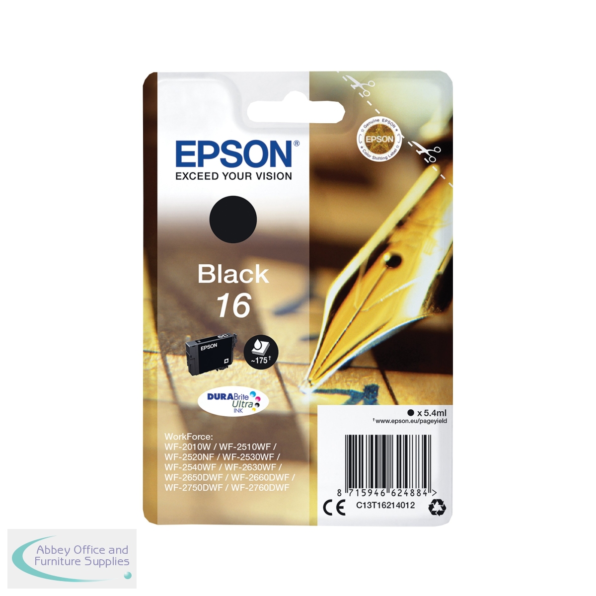[ Epson; Printer/Fax/Copier Supplies; Inkjet Cartridges; Black; OEM Code C13T16214012; EAN 08715946624884; VOW Code EP62488 ]