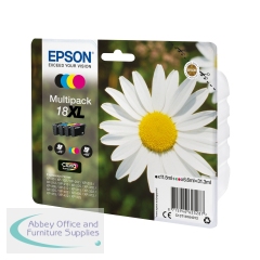 Epson 18XL Claria Home Ink set is a high yield, versatile, four-colour multipack cartridge set that delivers crisp, clear text documents and glossy, lab-quality photos. It is ideal for affordable, reliable printing without compromise. Pack contains one of each: T1811 (Black), T1812 (Cyan), T1813 (Magenta), T1814 (Yellow).