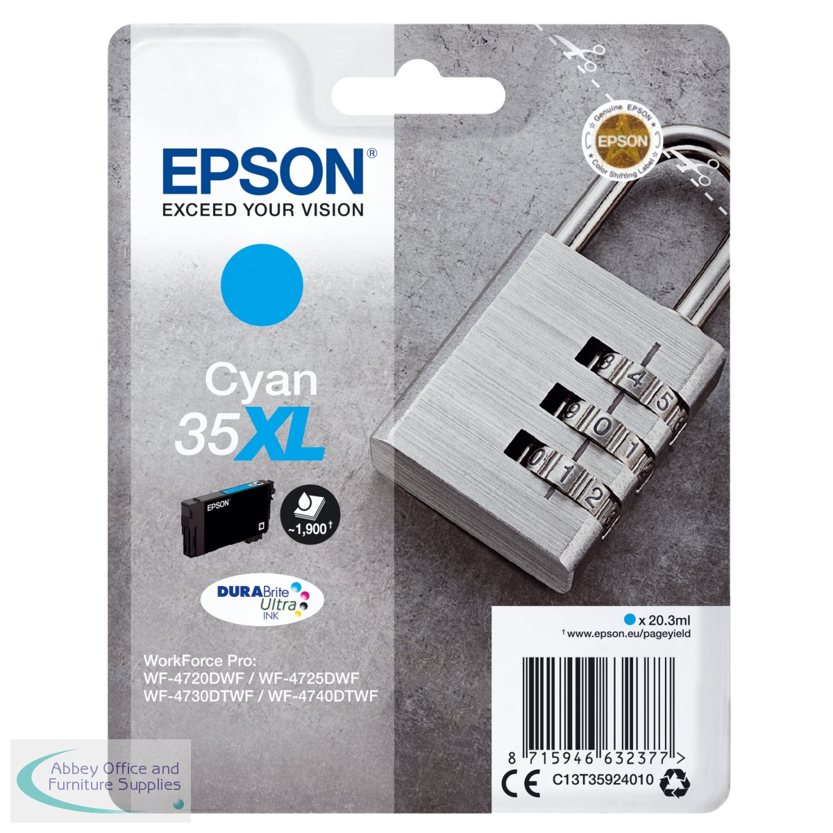 EP63237 - Epson 35XL Padlock DURABrite Ultra Ink Cartridge High Yield Cyan C13T35924010