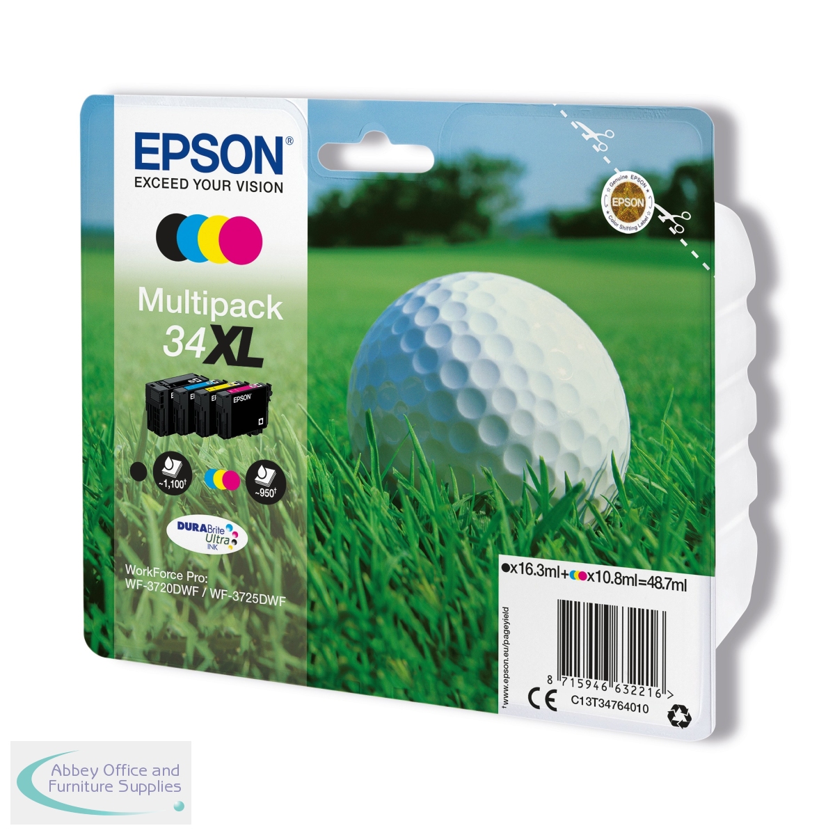 EP63221 - Epson 34XL Golf Ball DURABrite Ultra Ink Cartridge High Yield CMYK Multipack C13T34764010