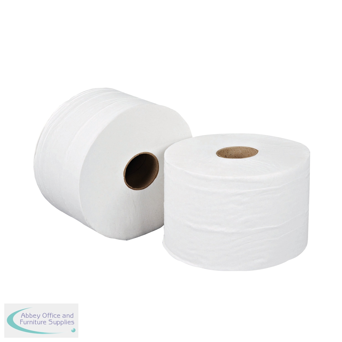 For use in Leonardo Versatwin Dispensers, this environmentally friendly Versatwin toilet roll is made from 100% recycled material. These 2-ply toilet rolls are soft, strong and absorbent, and are ideal for use in shared washrooms. Each roll is 90mm wide and 125m in length for long lasting use. This pack contains 24 white rolls.