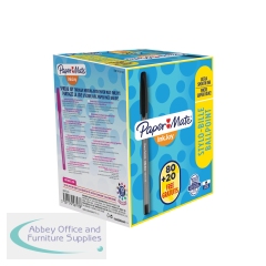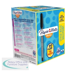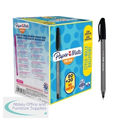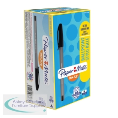 The PaperMate InkJoy system aims to put the joy back in writing with a unique low viscosity black ink that flows easier for smooth writing with less drag. It also features a improved nib that delivers clear and crisp lines. The InkJoy 100 has a neat triangular shape that provides extra comfort to your fingers and gives precise control for any kind of writing or drawing. The medium 1.0mm nib writes a 0.4mm line width. This value pack contains 100 black pens.