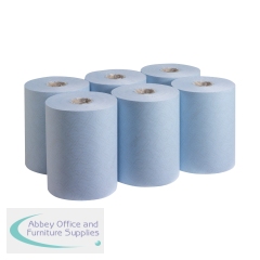 This Scott Essential Slimroll Hand Towel Roll features a compact, slim design, which is ideal for use in shared washrooms where space may be limited. Made using unique AIRFLEX technology, the 1-ply roll is soft and highly absorbent for a comfortable, cost effective hand drying experience. Each embossed roll contains 760 sheets and is 190m long. For use with Aquarius Slimroll hand towel dispensers (7955 and 7956), this pack contains 6 blue rolls.