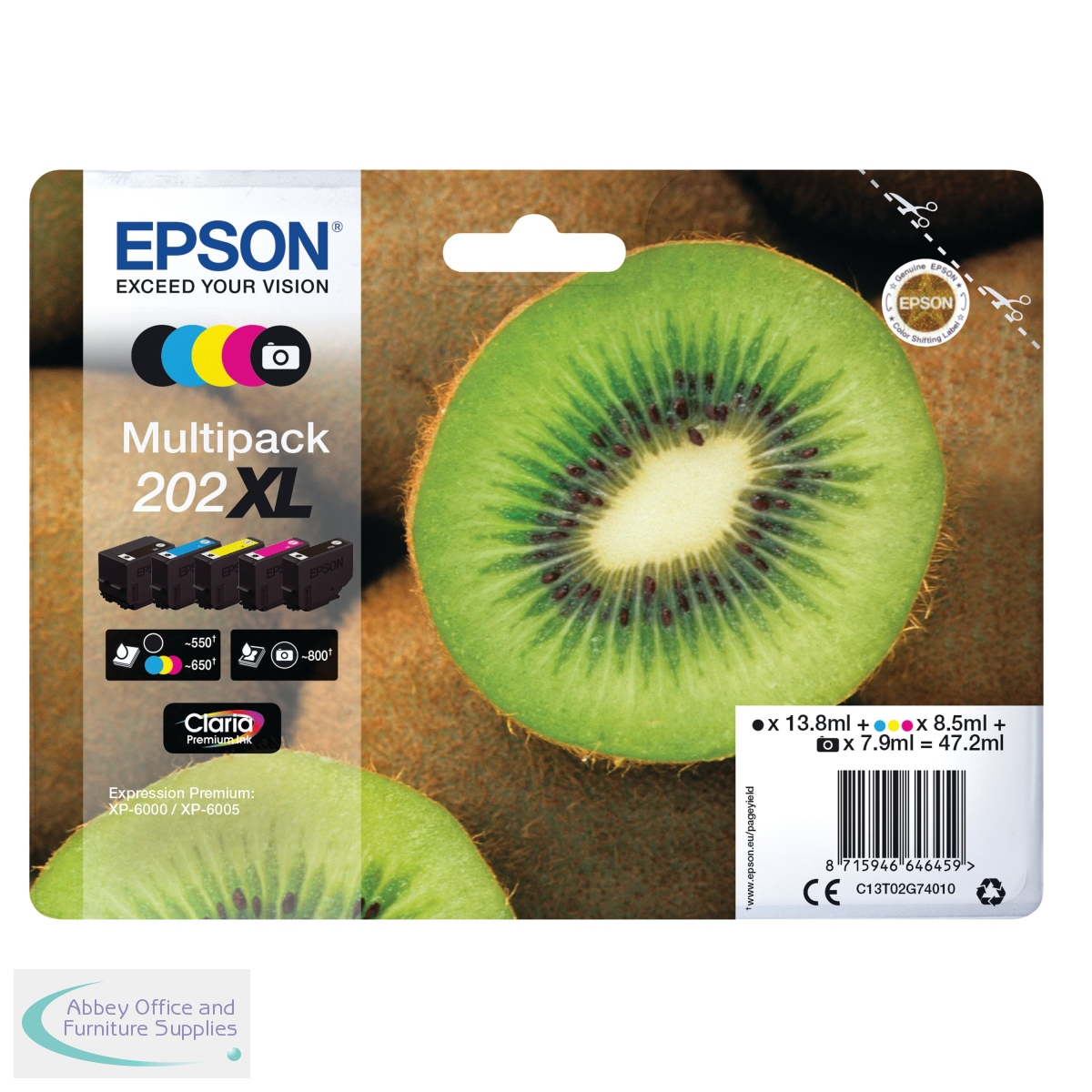 EP64645 - Epson 202XL Kiwi Claria Premium Ink Cartridge High Yield CMYK/Photo Black Multipack C13T02G74010