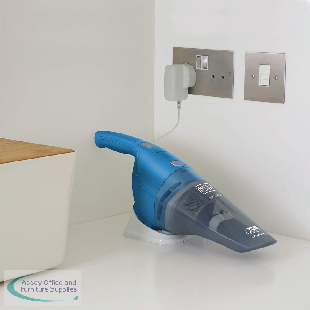 The Black and Decker Wet & Dry Dustbuster is a versatile handheld vacuum cleaner. It lets you clean wet and dry spills and the small size makes it compact and lightweight enough to make cleaning easy. A translucent, bagless dust compartment with a 370ml capacity makes it easy to know when it needs emptying. When not in use the Dustbuster can be docked at its charging base on a counter top or have the base mounted on the wall with the provided fixings.