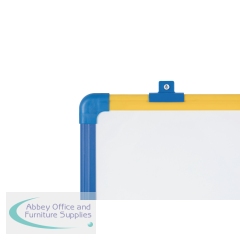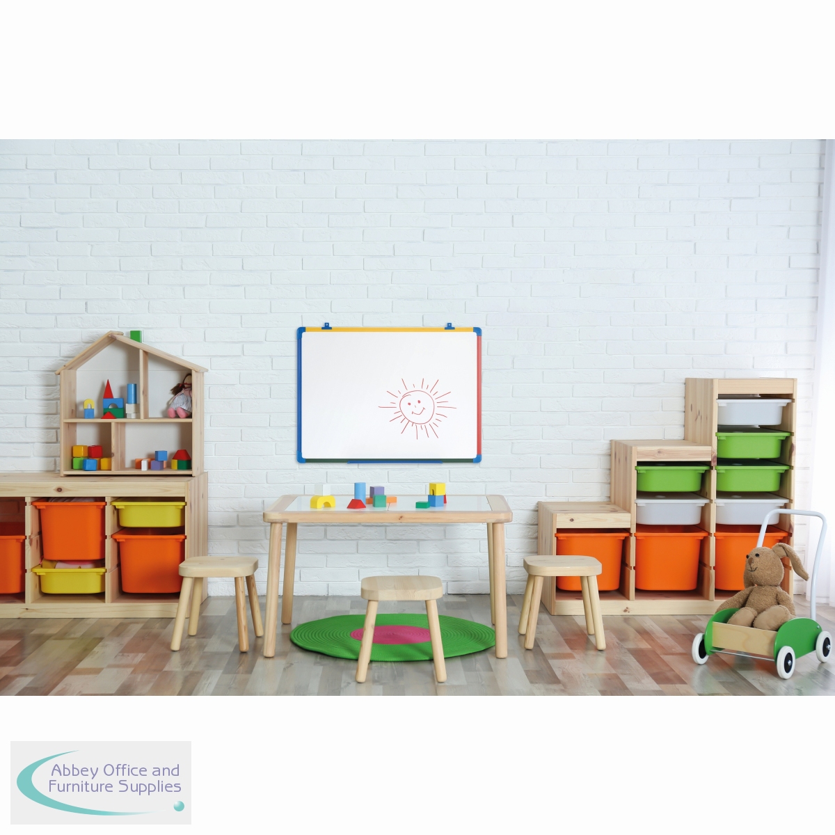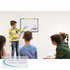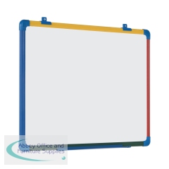 Ideal for use in schools, this drywipe board has a brightly coloured plastic frame and a Magnetic coated steel surface, perfect for use with pens and magnets. It has rounded corners for increased safety and is supplied with wall fixings and pen tray. This board measures 900 x 600mm.