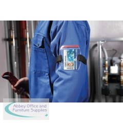 Durable Security transparent Arm Band ID badge holder for people in active working environments and outdoor security roles. The arm band strap is adjustable and securely holds ID cards and passes in place whilst keeping them visible at all times. A safe and practical option for those working with machinery and at events. Resistant to moisture and dirt.