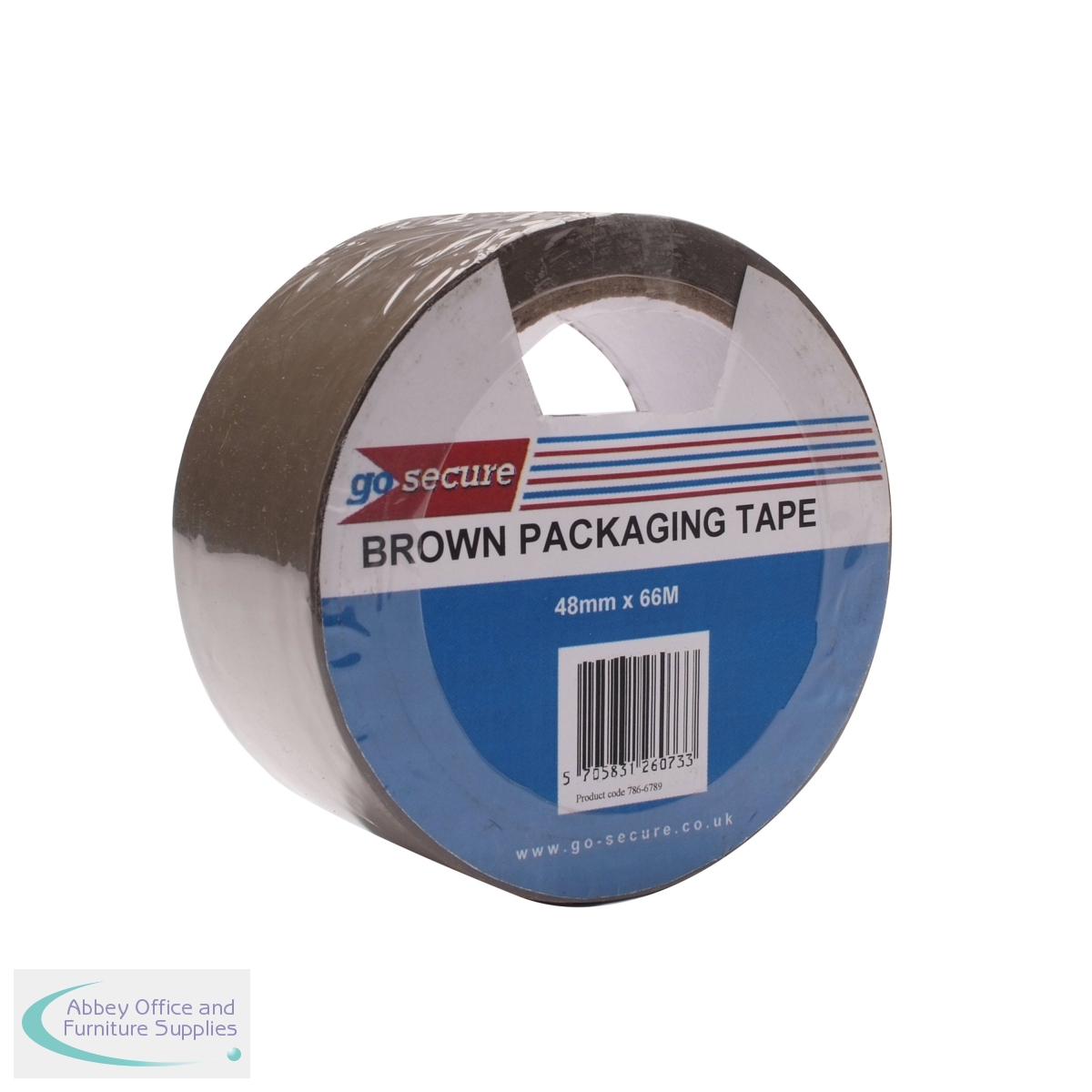 GoSecure Packaging tape is ideal for securing and sealing boxes, parcels and other packages. Suitable for use with a compatible tape dispenser, each roll measures 50mm x 66m. This pack contains 6 brown rolls.