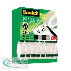 Scotch Magic Tape is a long lasting, solvent-free tape that is designed not to yellow or dry out with age. Virtually invisible when applied, making it perfect for repairs to torn paper or wrapping packages attractively. The matte surface can be written on, which is ideal for adding labels or notices to parcels. This tower pack contains 20 rolls with an extra 4 rolls free.