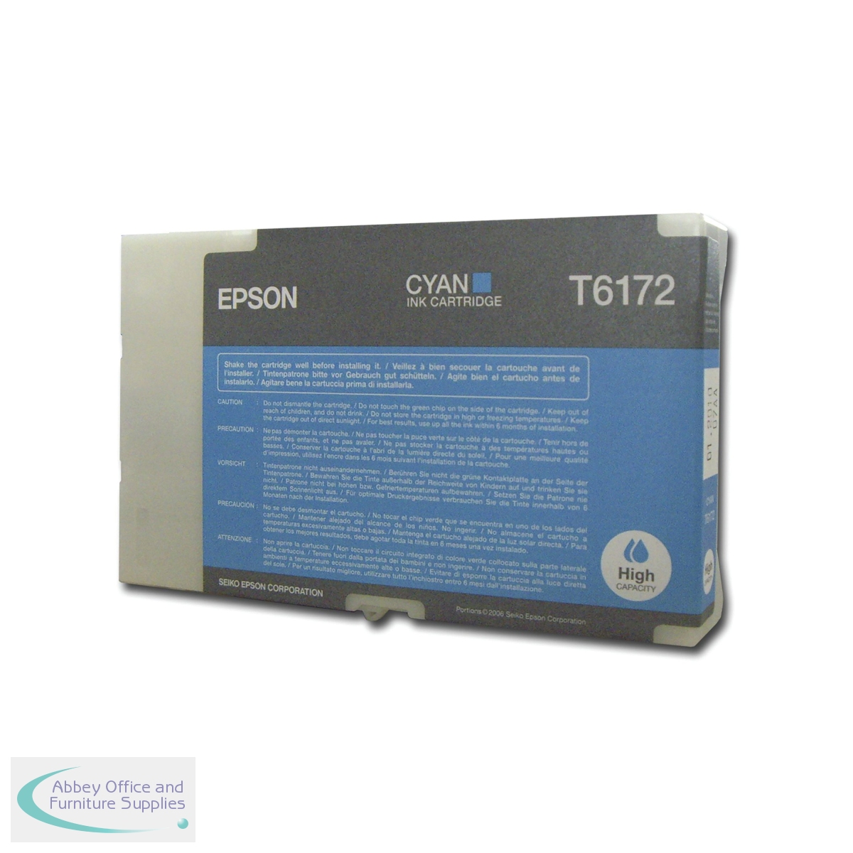 Install a genuine Epson T6172 Cyan High Yield Inkjet Cartridge for exceptionally long-lasting results from your Epson B-500 series inkjet printer. It's packed with high quality DURABrite ink that reduces the risk of ugly smudges or blotting caused by water, ensuring documents remain bright and crisp. This high yield cartridge gives you the same fantastic results as a normal cartridge, but with the bonus of a greater page yield - up to 7,000 pages. This reduces the hassle of constantly changing cartridges and helps to reduce waste.